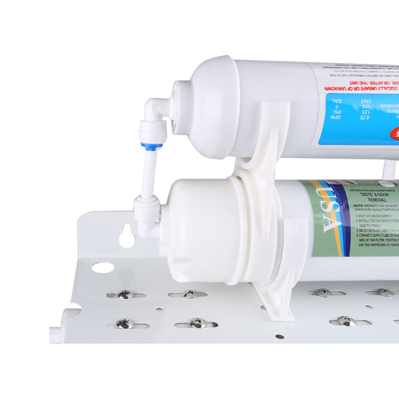 بعد المرور عبر غشاء RO، تخضع المياه لمرحلة ما بعد الترشيح، عادة من خلال مرشح الكربون المنشط. تساعد هذه المرحلة النهائية على إزالة أي شوائب متبقية وتحسين طعم ورائحة الماء. يقوم الفلتر اللاحق عادةً بإزالة أي كلور متبقي، والمركبات العضوية المتطايرة (VOCs)، والروائح الأخرى، مما يضمن أن يكون مذاق المياه طازجًا ونظيفًا.